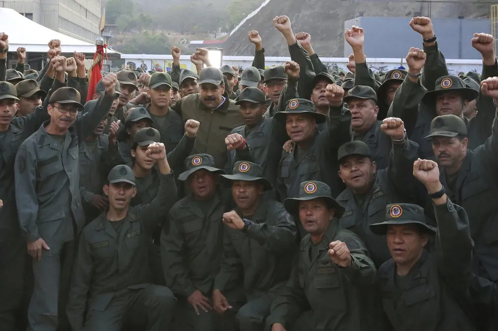 Tổng thống Venezuela Nicolas Maduro (ở giữa) và binh sĩ Venezuela. Ảnh: AP
