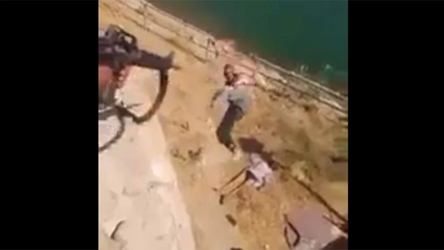 Một cảnh xuất hiện trong video cho rằng binh sĩ Iraq xả súng trả thù hai người đàn ông được cho là thành viên IS. Ảnh: Fox News