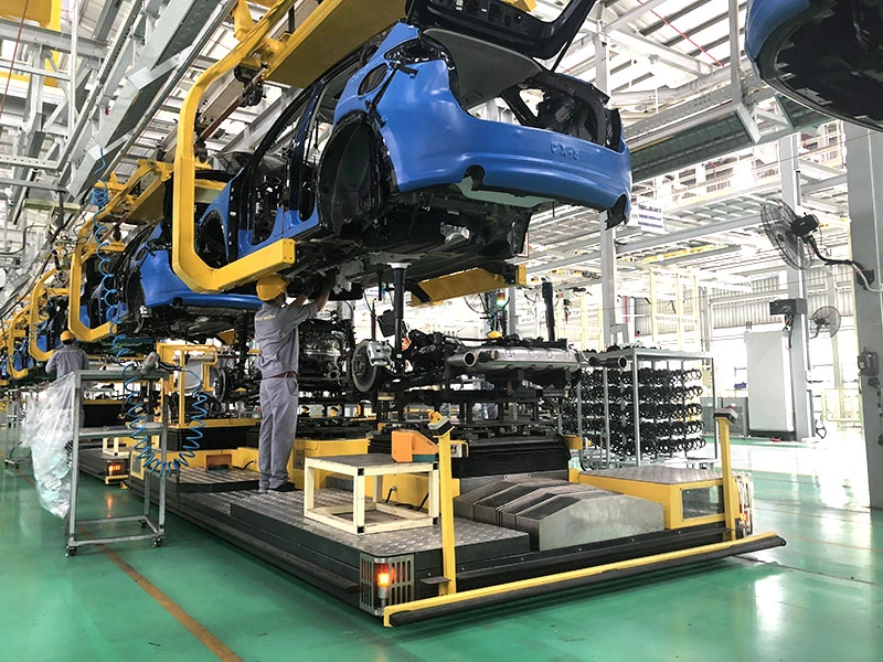 Công nhân làm việc trong Nhà máy sản xuất ô tô Thaco Mazda. Ảnh: QUANG HUY