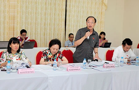 Đại biểu Quốc hội TP.HCM Lê Đông Phong phát biểu tại tổ về Dự án Luật căn cước công dân và Dự án Luật hộ tịch . Ảnh: TTXVN