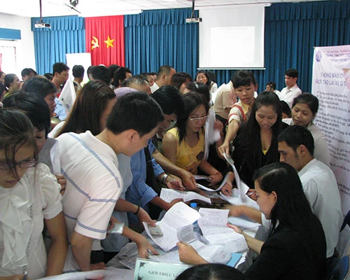 Mức đóng BHXH thấp khiến người lao động đối mặt với nguy cơ thu nhập hơn chuẩn nghèo trong tương lai. Người lao động đăng ký thông tin về tình trạng việc làm tại Trung tâm giới thiệu việc làm TP.HCM. Ảnh: P.ĐIỀN