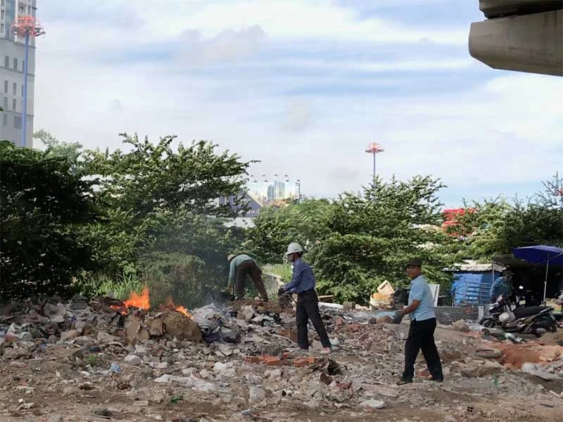 Trên địa bàn các phường Bình An, An Phú, Thảo Điền (quận 2) hiện nay có rất nhiều dự án khu dân cư, trung tâm thương mại đang triển khai xây dựng. Một lượng rác thải xây dựng rất lớn từ các công trình này bị đổ trộm tại các khu đất trống. Điều đáng nói, biện pháp mà người dân lựa chọn để xử lý là đốt số rác này, khói bụi bay lên càng gây ô nhiễm môi trường.