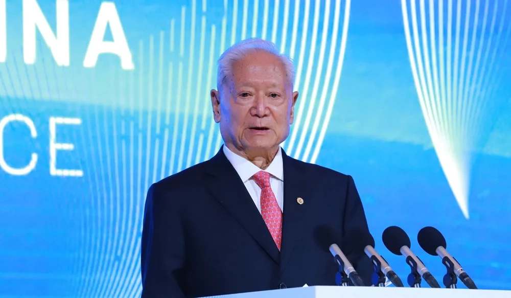 cựu lãnh đạo Trường Đảng Trung ương Trung Quốc Trịnh Tất Kiên phát biểu tại hội thảo ngày 21-11. Ảnh: SCMP