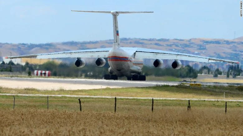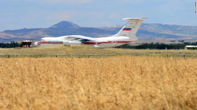Máy bay chở hàng của Nga hạ cánh xuống sân bay Murted ngày 12-7. Ảnh: CNN