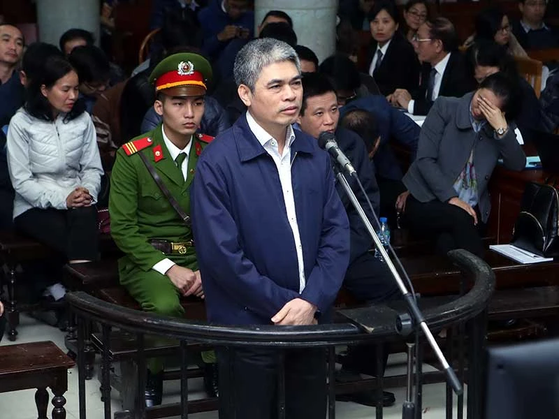 Bị cáo Nguyễn Xuân Sơn, cựu tổng giám đốc OceanBank, cựu chủ tịch Tập đoàn Dầu khí Việt Nam - PVN, tại tòa. Ảnh: TTX