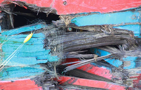 Vết đâm trí mạng của tàu TQ khiến tàu cá ĐNa-90152 chìm trên biển. Ảnh: LÊ PHI