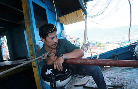 Anh Trần Văn Vốn ngậm ngùi bên xác con tàu của gia đình. Ảnh: LÊ PHI