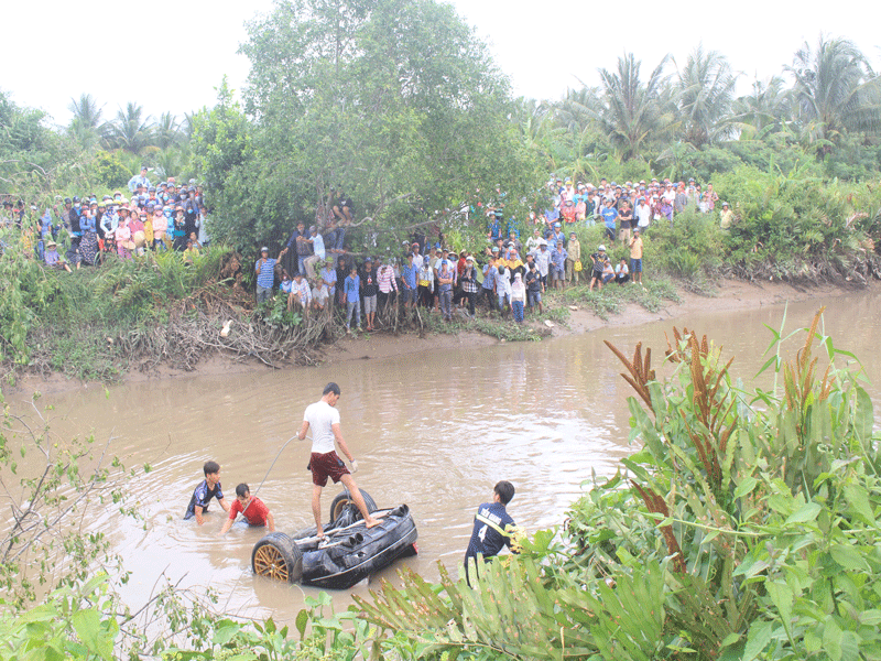 Trưa cùng ngày, rất đông cán bộ, chiến sĩ Công an tỉnh Tiền Giang cùng lực lượng chức năng đã tiến hành trục vớt ô tô lên bờ, đưa thi thể các nạn nhân ra ngoài...