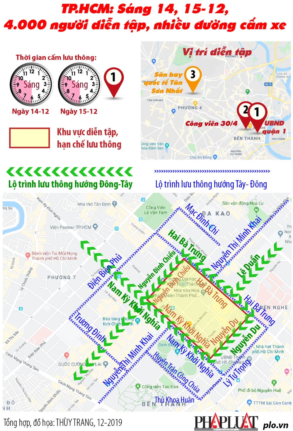 (PLO)- Đại diện lãnh đạo Công an TP.HCM cho biết tại 3 nơi trên địa bàn TP ngày 14, 15-12 có buổi diễn tập lớn 4.000 người, cấm xe nhiều đường trung tâm và lộ trình thay thế.