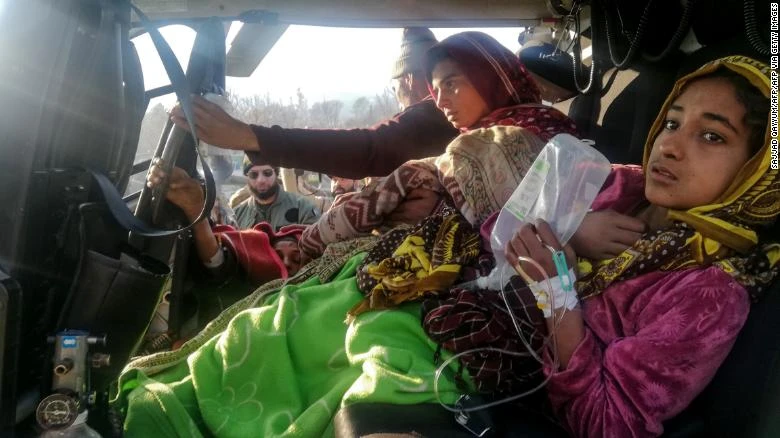 Một số nạn nhân bị thương đã được trực thăng quân sự đưa đến Muzaffarabad để điều trị. Nhiều máy bay trực thăng khác cũng được điều động để cung cấp thực phẩm và nhu yếu phẩm cho người dân bị tuyết cô lập.