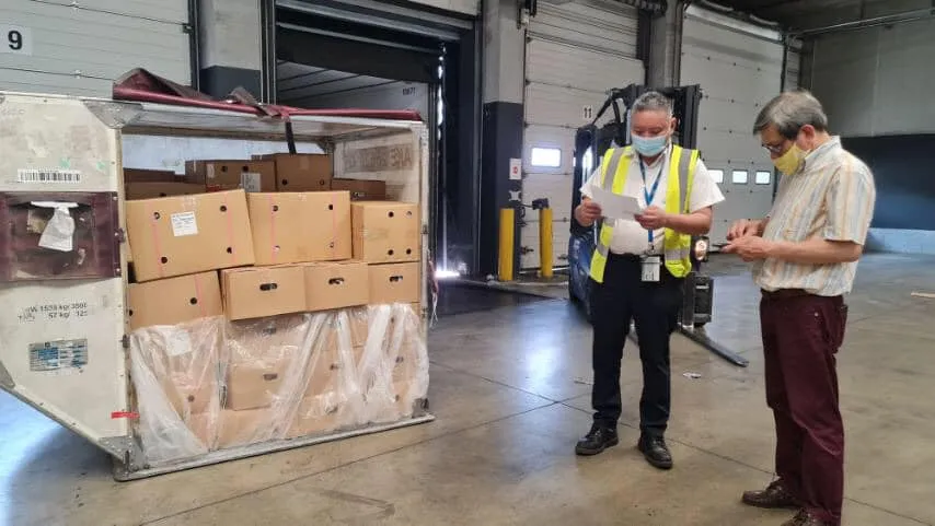 Vào 21 giờ tối 12-6, lô vải thiều đặc sản Thanh Hà, Hải Dương đầu tiên đã hạ cánh sân bay Charles de Gaulle. Ảnh: BCT