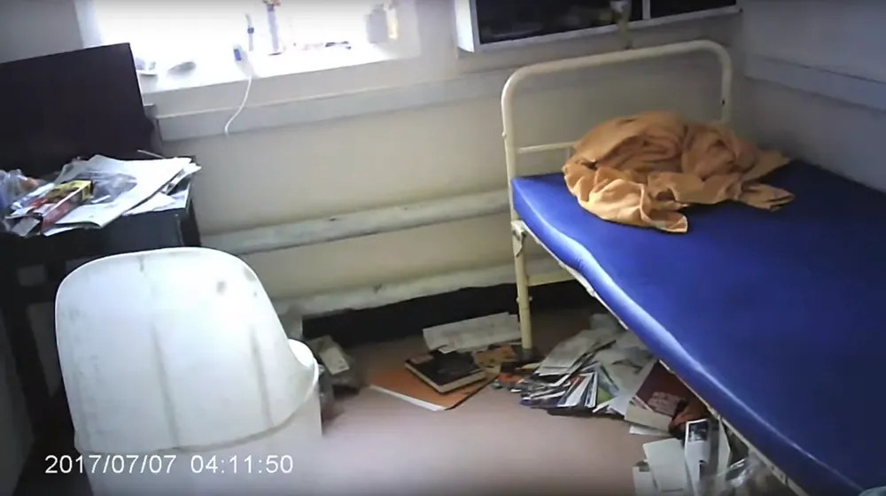 Camera sau đó còn cho thấy phòng giam nhỏ tồi tàn, với sách và giấy tờ vương vãi khắp sàn nhà. Trong khi RT vẫn chưa xác thực được đó là phòng giam của ông Assange, thì nhà báo và người được nhìn thấy đi vào phòng giam ở đoạn đầu của video.