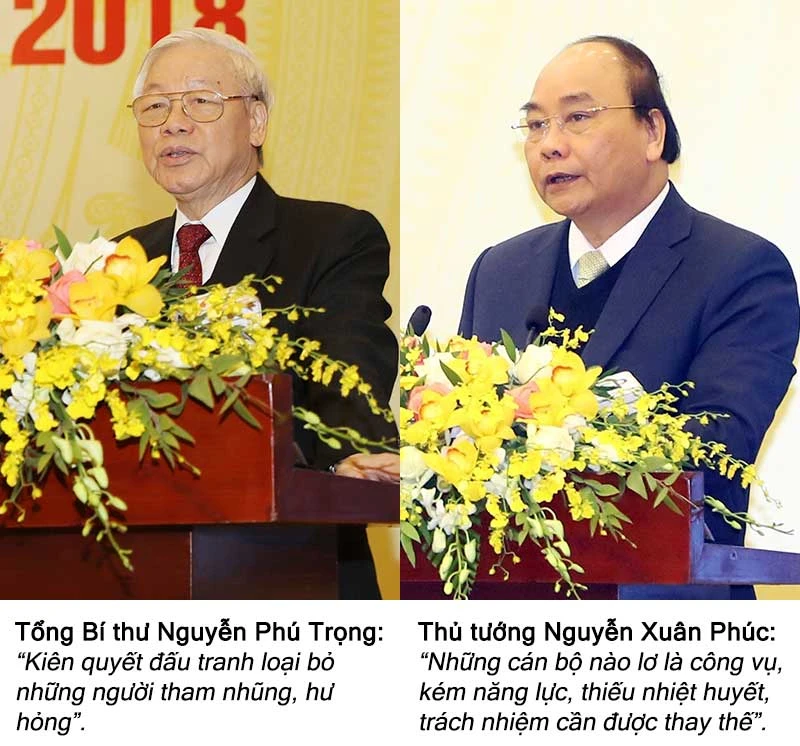 | Không chủ quan, say sưa với thành tích Năm 2017, chúng ta đã đạt được những kết quả quan trọng, đáng mừng trên hầu hết lĩnh vực, để lại những ấn tượng tốt đẹp và cho chúng ta thêm nhiều bài học quý. Một không khí phấn khởi, tin tưởng vào sự lãnh đạo của Đảng, vào thắng lợi của sự nghiệp đổi mới, xây dựng và bảo vệ Tổ quốc đang lan rộng trên khắp cả nước. Tuy nhiên, chúng ta tuyệt nhiên không chủ quan, thỏa mãn; không say sưa với thành tích, thắng lợi. Bởi vì đất nước vẫn đứng trước nhiều khó khăn, thách thức. Những hạn chế, yếu kém tích tụ, tồn đọng từ lâu của nền kinh tế và trong nhiều lĩnh vực xã hội còn nặng nề, gây hậu quả xấu, bức xúc xã hội nhưng không dễ một sớm một chiều có thể khắc phục và đòi hỏi phải có giải pháp đồng bộ, lộ trình phù hợp, sự chỉ đạo kiên quyết, kiên trì, chắc chắn, khoa học mới có thể giải quyết được. Đó là tình trạng làm ăn thua lỗ, thất thoát, tham nhũng, lãng phí xảy ra ở nhiều doanh nghiệp, dự án. Tình trạng “trên nóng, dưới lạnh”, “trên bảo dưới không nghe”, kỷ cương phép nước bị buông lỏng còn diễn ra ở nhiều nơi... Năm 2018, cần tiếp tục đẩy mạnh và làm tốt hơn nữa công tác xây dựng Đảng và hệ thống chính trị, đặc biệt là xây dựng Chính phủ, chính quyền các địa phương thật sự trong sạch, liêm chính, vững mạnh, hoạt động hiệu lực, hiệu quả... Làm tốt hơn nữa công tác cán bộ để lựa chọn, bố trí những cán bộ thực sự có đức, có tài, liêm chính, tâm huyết, thật sự vì Đảng, vì dân vào các vị trí lãnh đạo của bộ máy nhà nước. Kiên quyết đấu tranh loại bỏ những người tham nhũng, hư hỏng; chống mọi biểu hiện chạy chức, chạy quyền, ưu ái tuyển dụng người thân, không đủ tiêu chuẩn... Siết chặt kỷ luật, kỷ cương hành chính, thường xuyên kiểm tra, đôn đốc, tạo chuyển biến mạnh mẽ trong thực thi công vụ; tăng cường phòng chống, phát hiện, xử lý nghiêm các vụ việc tham nhũng, tiêu cực, vi phạm pháp luật... Thực hiện tốt những việc nêu trên sẽ không hề làm “chùn” sự chỉ đạo hay làm “chậm lại” sự phát triển mà ngược lại, sẽ giúp làm trong sạch, tạo sức mạnh thật sự của bộ máy và đội ngũ, củng cố và tăng cường niềm tin của nhân dân, tạo động lực mới, khí thế mới để Chính phủ và chính quyền các địa phương lãnh đạo, chỉ đạo thực hiện thành công mọi nhiệm vụ. Tổng Bí thư NGUYỄN PHÚ TRỌNG |