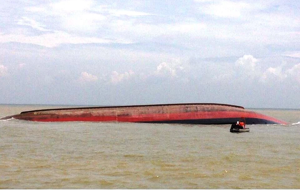 Tàu VTB 26 lớn lại lật úp nên công tác trục vớt đang gặp khó khăn.