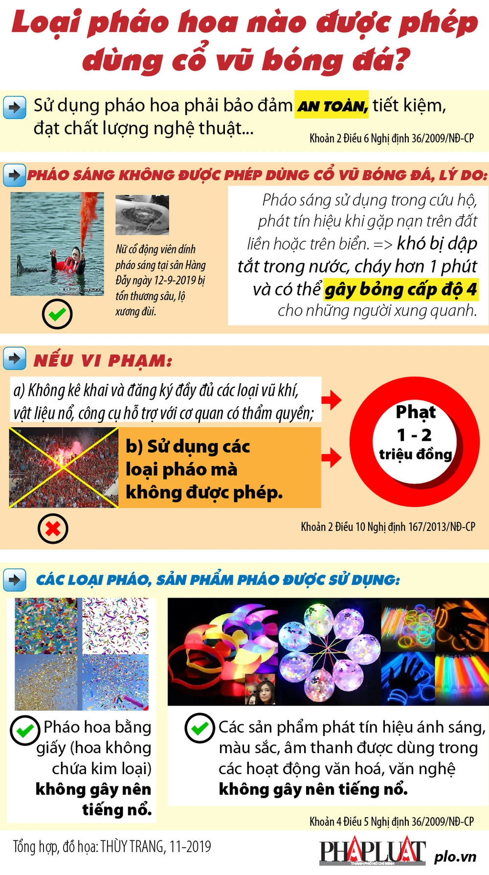 Loại pháo hoa nào được phép dùng cổ vũ bóng đá?