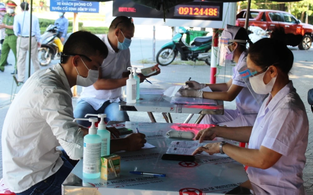 Khai báo y tế và kiểm tra thân nhiệt tại các chốt kiểm soát vào, ra TP Vinh.