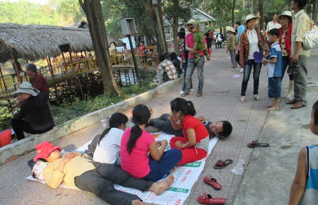 Một chiếc chiếu được cho thuê với giá 20.000 đồng, đặt cọc thêm 30.000 đồng. Ai đó chê đắt, người cho thuê chẳng buồn trả lời, vì khách đến thuê nườm nượp. Một du khách quê Hà Tĩnh cho biết: “Lần đầu tiên tôi tới đây, không ngờ đông đúc quá thế này. Mệt thì phải thuê chiếu nằm nghỉ thôi, đắt mấy cũng phải thuê”.