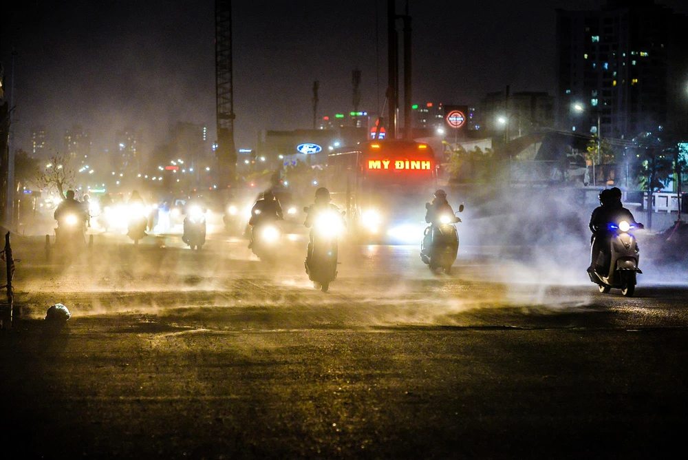 Không khí ô nhiễm đặc quánh trong một buổi chiều mùa hè nắng nóng cao điểm, khi mà bức xạ nhiệt, khói bụi từ hàng trăm ngàn ống xả đông cơ ô tô xe máy cộng với hiệu ứng đô thị tạo nên một lớp khói bụi bao phủ toàn bộ thành phố Hà Nội.