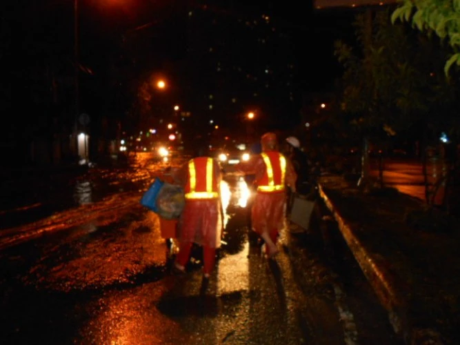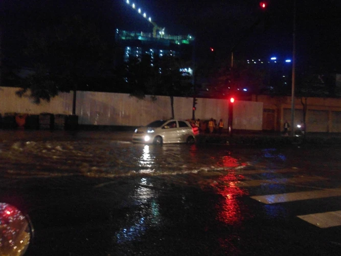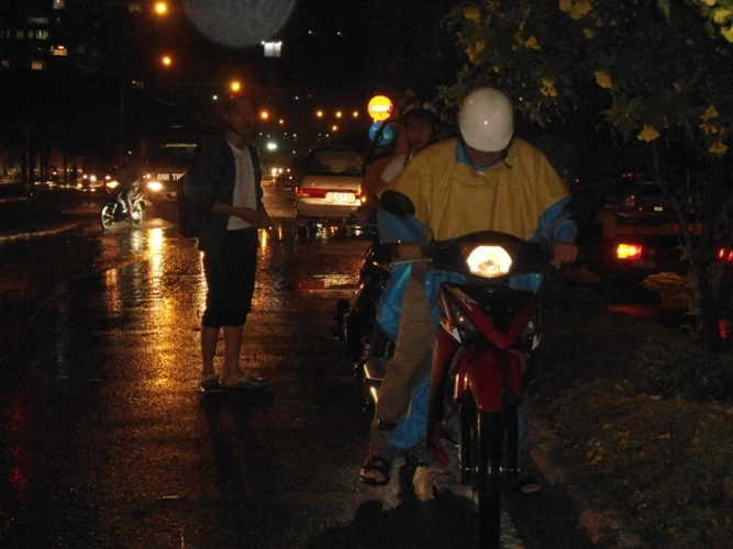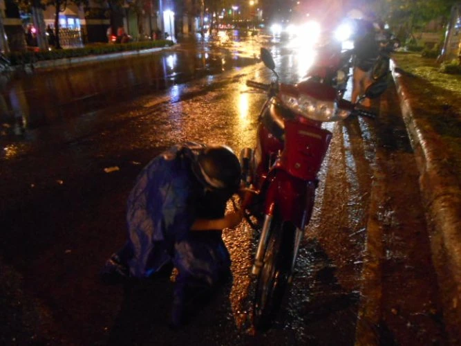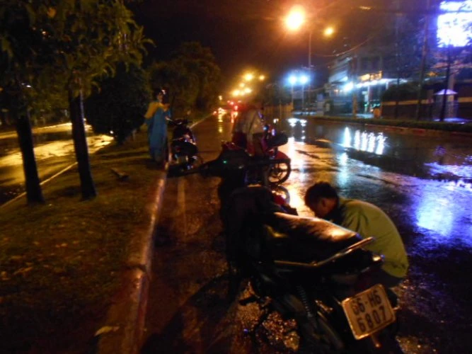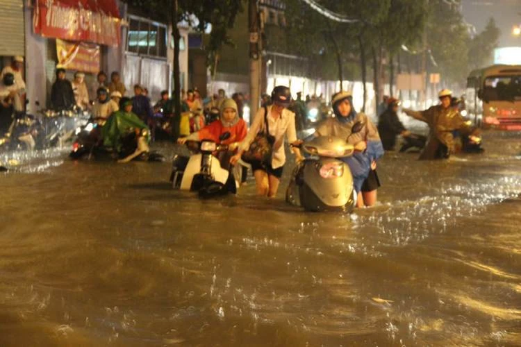 (PLO) - Đến gần 1 giờ sáng ngày 16-9, vẫn còn rất nhiều phương tiện giao thông chết lặng trên các tuyến đường Nguyễn Hữu Cảnh, Xô Viết Nghệ Tĩnh (Bình Thạnh), Lê Văn Việt (quận 9), Quốc lộ 13, Kinh Dương Vương, 3/2…vì đường ngập, xe chết máy. Nước vẫn ngập hơn nửa bánh xe, nhiều nắp cống bị trôi ra khỏi mặt đường, nước xoáy thành hũng sâu gây nguy hiểm cho người và phương tiện...Người dân lướt thướt dắt bộ, chỉ mong sớm về tới nhà.