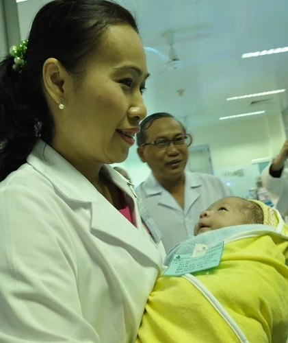 (PLO) - 25 ngày sóng gió đã qua đối với bệnh nhi sơ sinh Nguyễn Quốc Huy, em bé bị văng khỏi bụng mẹ sau tai nạn kinh hoàng trên đường Trần Hưng Đạo (An Giang) hôm 25-10. 25 ngày em bé có số phận đặc biệt này được các y, bác sĩ của bệnh viện Nhi Đồng 1 tận tâm cứu chữa. Sáng nay, bé Huy đã được khỏe mạnh xuất viện trong vòng tay yêu thương của cha và các thiên thần áo trắng.