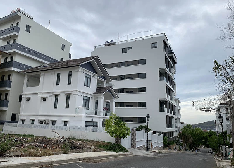 Cụ thể, có 13 biệt thự xây 5-10 tầng, mật độ xây dựng đến 100%. Các chủ đầu tư tự ý biến khu biệt thự thành tổ hợp nhiều nhà cao tầng để kinh doanh khách sạn. Có chín biệt thự khác xây ba tầng và một tầng mái. Mới đây, Sở Xây dựng còn phát hiện thêm hai công trình vi phạm tại dự án trên.