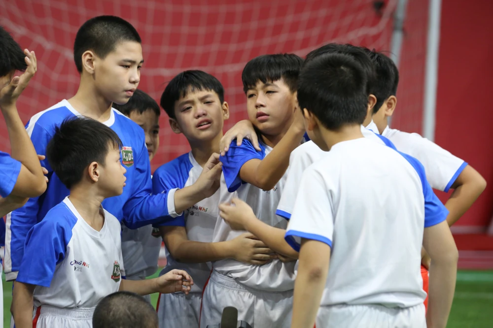 Các cầu thủ nhí bật khóc khi Xuân Chương bị loại khỏi chương trình.