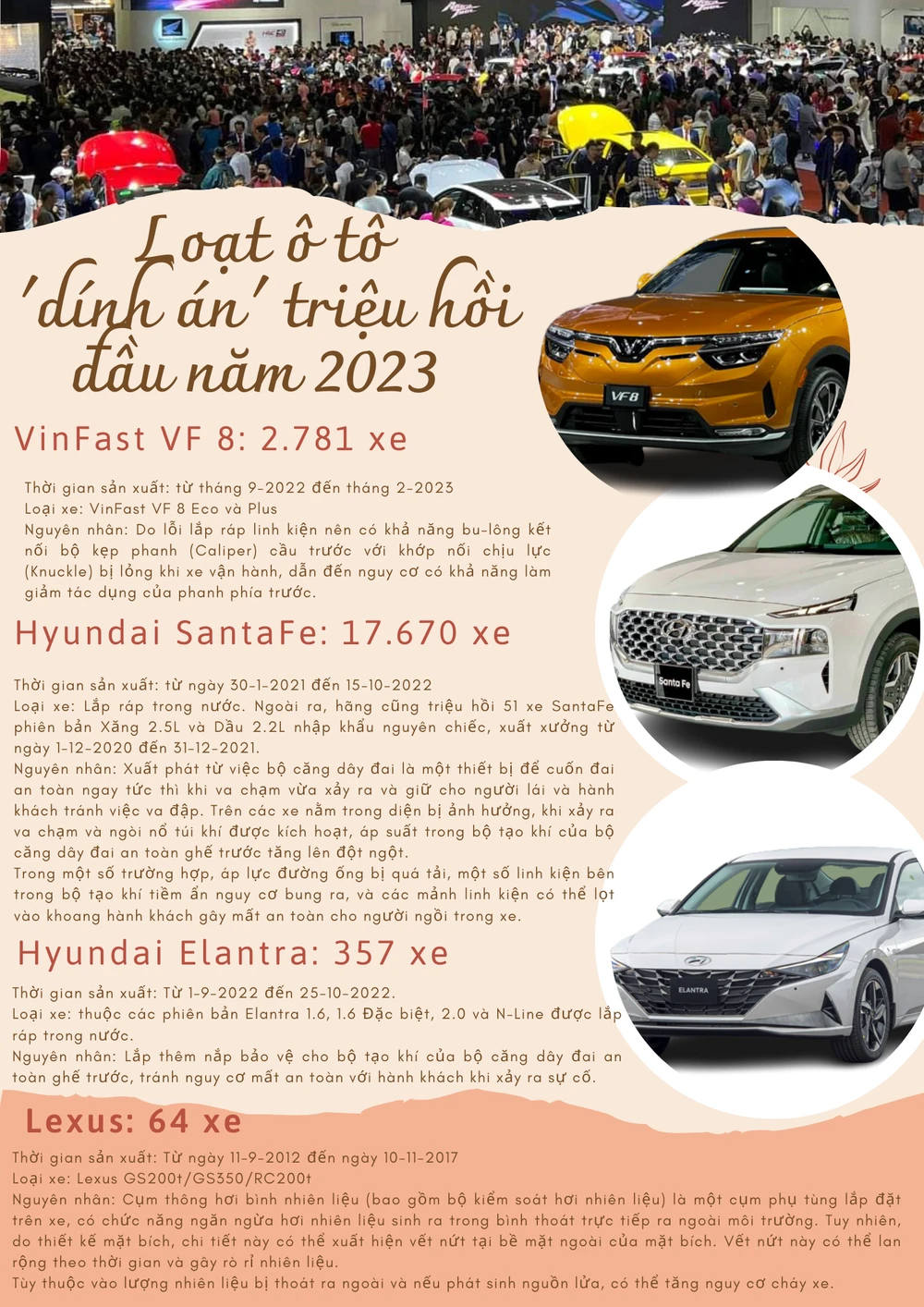 Loạt ô tô 'dính án' triệu hồi đầu năm 2023