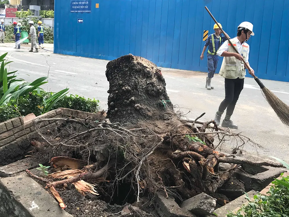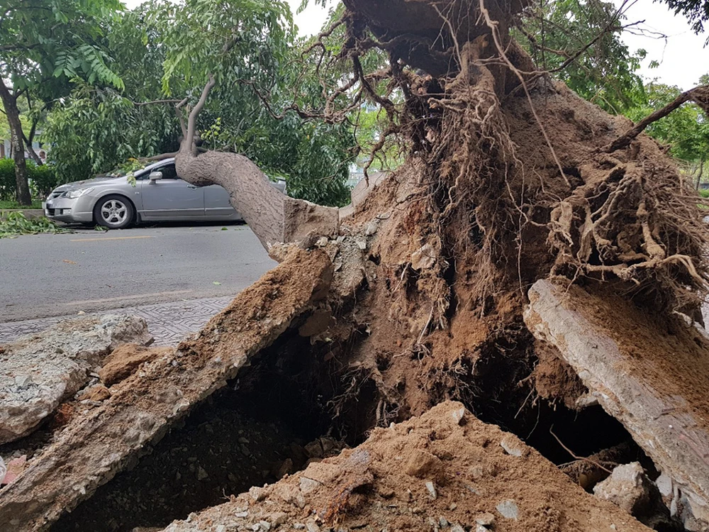 Phần gốc cây vẫn còn bộ rễ tốt chưa có dấu hiệu bị mục nhưng không trụ lại trước gió lớn.
