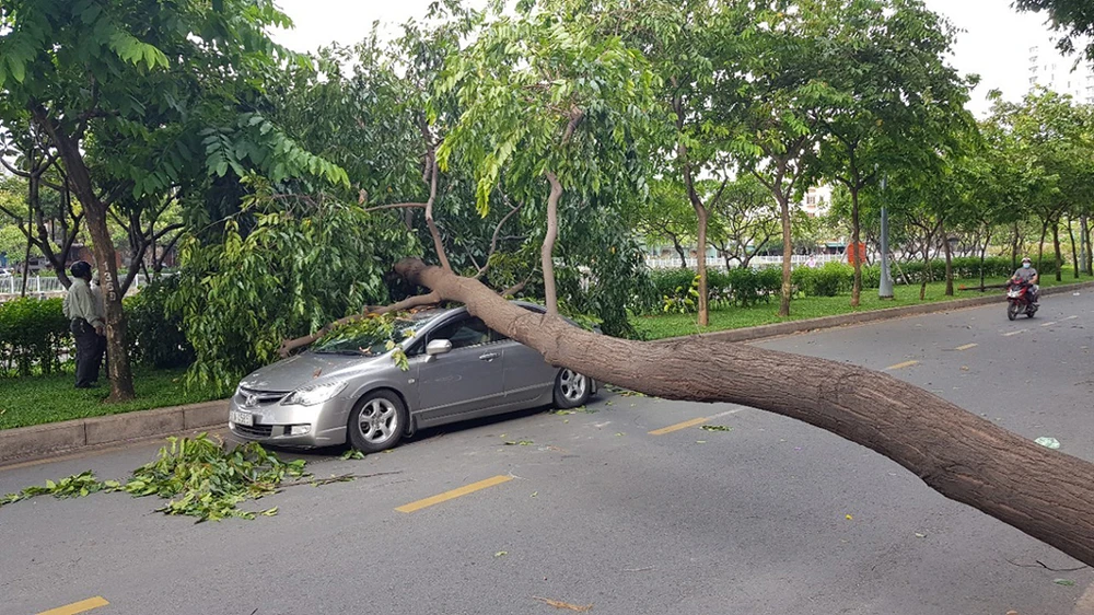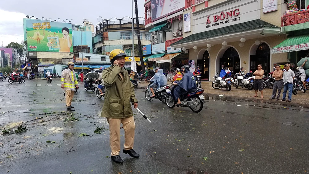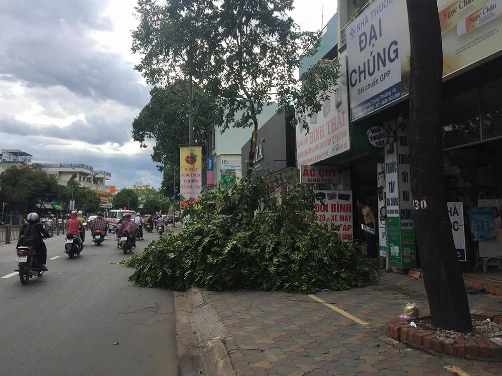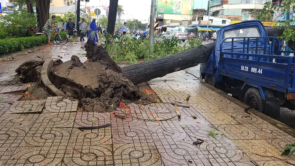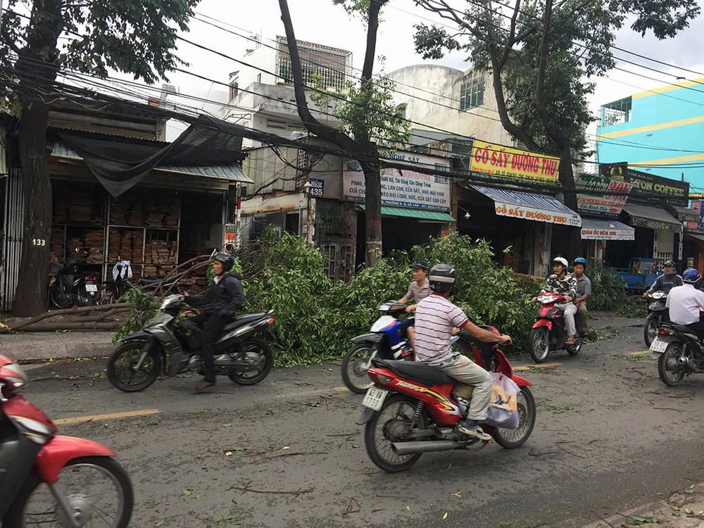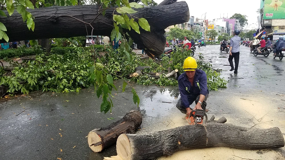 Nhiều cây xanh gãy đổ tại các địa bàn quận, huyện ở TP.HCM khiến giao thông gặp nhiều khó khăn.