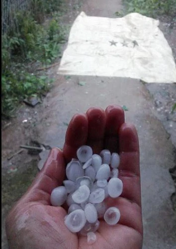 Mưa đá với nhiề viên đá lớn hơn hạt ngô trút xuống địa bàn xã Mai Sơn. Ảnh: Bùi Lan