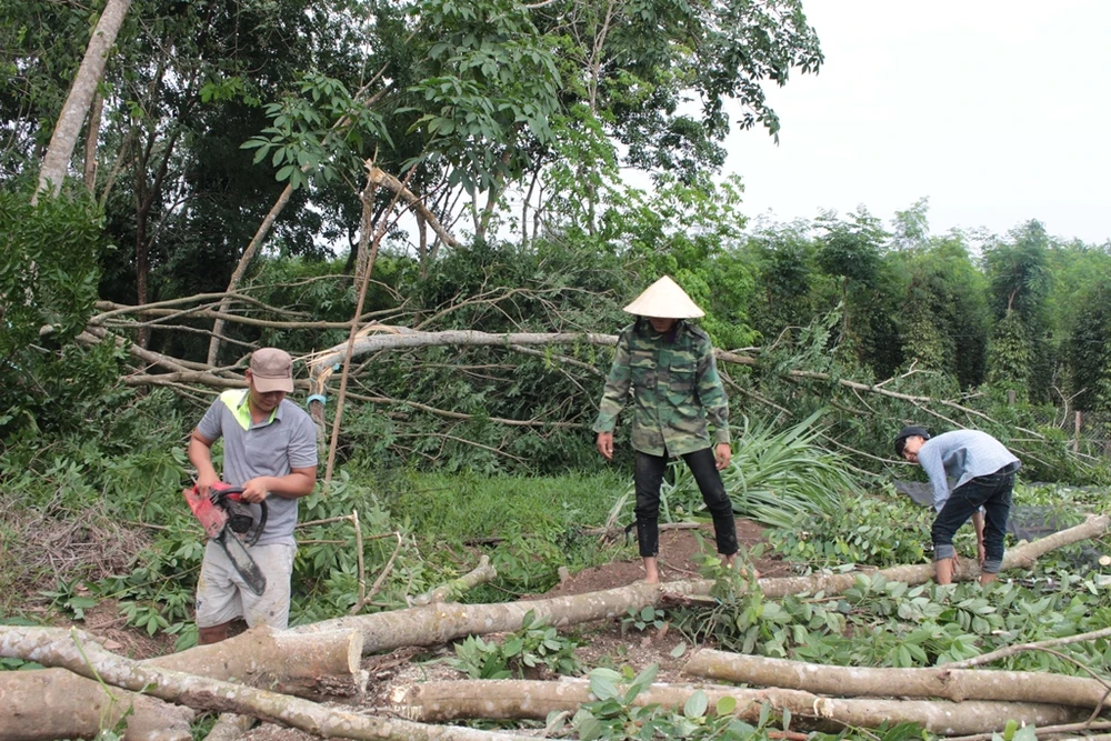 Tương tự, gia đình ông Nguyễn Ngọc Bữu (xã Tân Tiến) cũng chịu thiệt hại nặng với 30 cây điều 10 năm tuổi và hàng trăm cây cao su đang cho thu hoạch gãy đổ. Ông Bữu cho biết: "Sống hơn 65 tuổi chưa từng chứng kiến cây điều, cao su bị cơn lốc quật ngã trơ gốc như vậy. Uớc tính gia đình thiệt hại trên 50 triệu đồng. Để trồng và khôi phục lại diện tích bị ngã đổ do lốc xoáy cũng phải 5-7 năm".