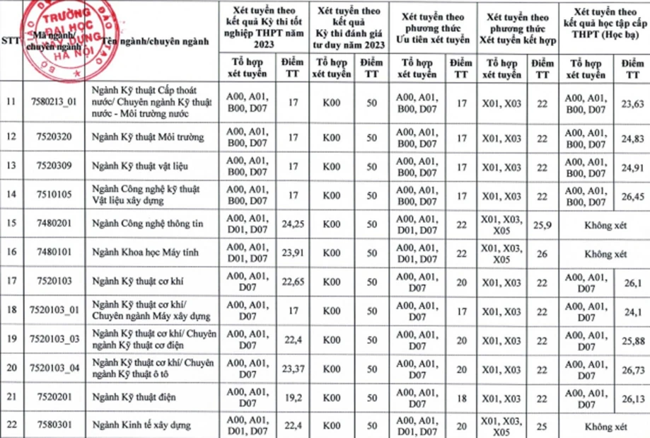 7 ngành có điểm thấp nhất Đại học Xây dựng chỉ có 17 điểm.