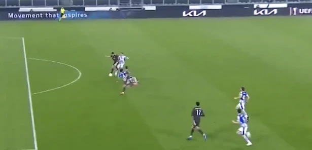Ở tình huống này, quả bóng đã vượt lên phía trước Bruno trước khi James chạm chân vào kiến tạo nên Bruno không rơi vào thế việt vị, dù Bruno đã đứng trước hậu vệ Real Sociedad.