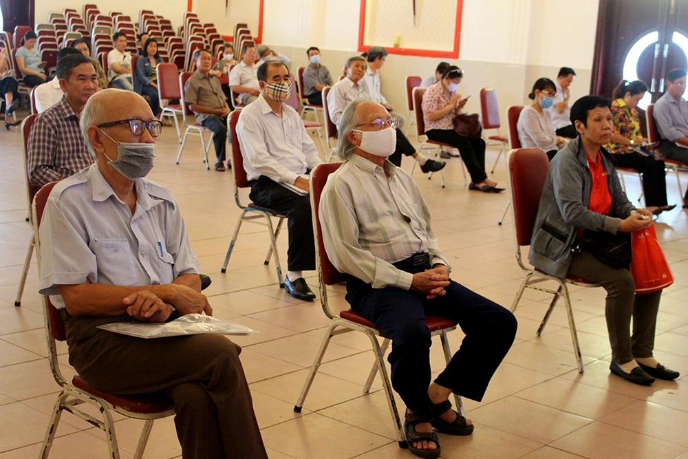 Cử tri quận Bình Thạnh được bố trí ngồi cách xa nhau, tại Nhà thiếu nhi quận. Arnh: LÊ THOA