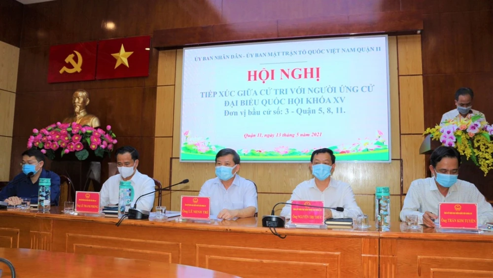 Ngày 13-5, các ứng cử viên (ƯCV) đại biểu Quốc hội khóa XV đơn vị bầu cử số 3 TP.HCM đã tiếp xúc với cử tri tại quận 11, TP.HCM.