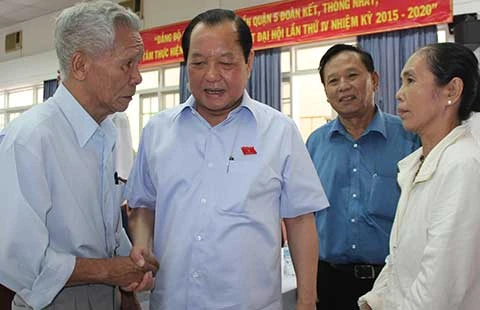 ĐBQH, Bí thư Thành ủy TP.HCM Lê Thanh Hải đang trao đổi với cử tri quận 5. Ảnh: TÁ LÂM