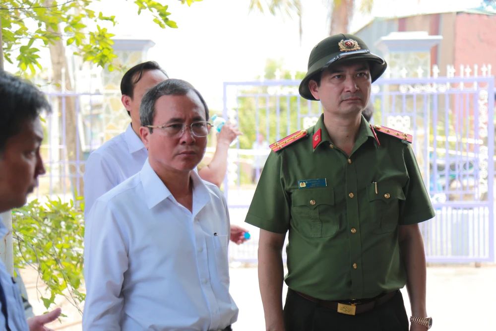 Ông Trần Văn Nam, Bí thư tỉnh ủy Bình Dương (giữa) và Đại tá Trịnh Ngọc Quyên, Giám đốc Công an tỉnh Bình Dương trực tiếp xuống hiện trường chỉ đạo công tác điều tra phá án.