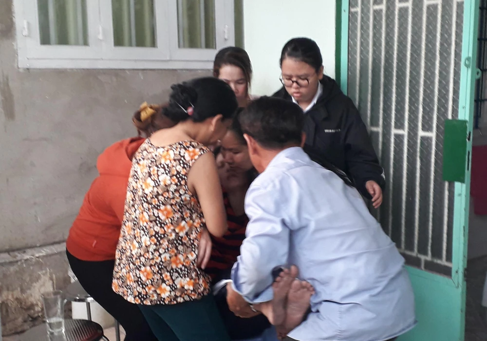 Tại căn nhà nhỏ của chị Trần Thị Minh Phương, không khí tang thương bao trùm, người thân và hàng xóm xung quanh vây quanh động viên an ủi.