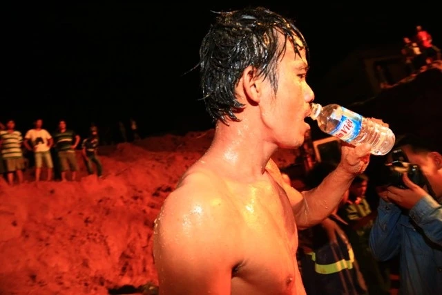 “Sau khi đo xác định được độ sâu của chỗ bé gái mắc kẹt khoảng 13 m, chúng tôi nhận định nếu dùng máy súc sẽ tốn thời gian và rất có thể bị sạt lở đất, gây ngạt cho bé. Vì vậy chúng tôi thay phiên nhau đào, cứ hai người xuống dưới, rồi hai người lên trên nghỉ ngơi. Đất chúng tôi đưa lên, phía trên có các chiến sĩ đưa đất lên bờ", anh Phương kể.