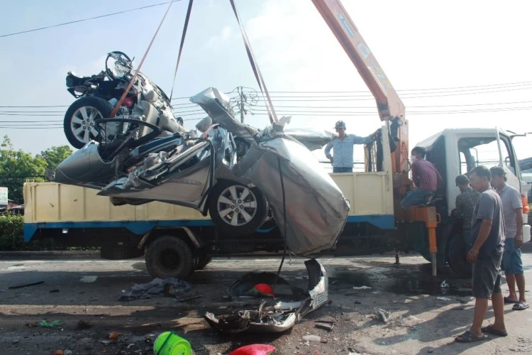 Ông Sơn kể tiếp, rất nhiều người đã có mặt sau tai nạn nhưng chỉ biết bất lực đứng nhìn, không thể cứu được các nạn nhân bị mắc kẹt bên trong xe ô tô 7 chỗ. “Phải mất 30 phút sau, hai xe cứu hộ được huy động đến để kéo và nhấc bổng xe container và xe khách ra thì mới thấy xác nạn nhân nằm bên trong xe ô tô 7 chỗ. Lực lượng cứu hộ đã chuyển từng người lên xe và nhanh chóng đưa vào nhà xác bệnh viện đa khoa quận Thủ Đức”- ông Sơn kể.
