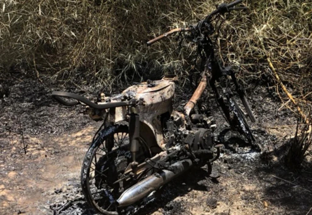 Chiếc xe máy gây án bị đốt cháy rụi nhằm phi tang. Ảnh do Công an Khánh Hòa cung cấp