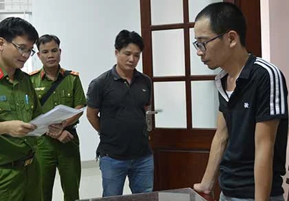 Công an tống đạt quyết định khởi tố bị can Trần Hữu Thịnh. Ảnh: T.KHÁNH