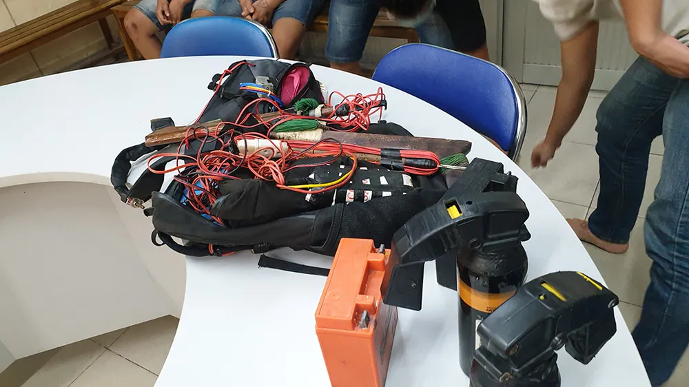 Hào khai, mua trang thiết bị, súng bắn điện, bình xịt hơi cay trên mạng xã hội. “Một bộ súng bắn điện tôi mua khoảng một triệu đồng; bình xịt hơi cay giá một triệu đồng” – Hào nói.