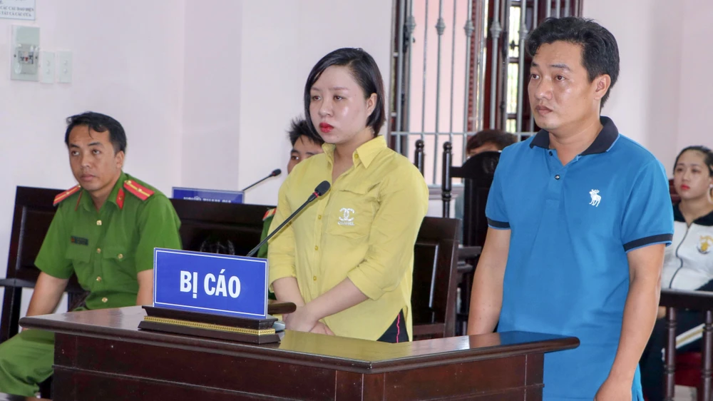 Hai bị cáo Vy và Luân tại tòa sơ thẩm.