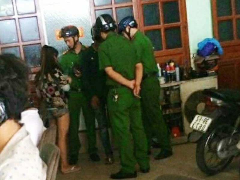 Công an phường Long Bình (TP. Biên Hòa, Đồng Nai) bắt giữ Nhị và Châu tại một tiệm game. Ảnh: VŨ HỘI