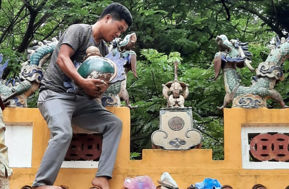 Qua các biện pháp nghiệp vụ, Công an quận Bình Thạnh xác định Trần Văn Thọ (29 tuổi, thường trú Bà Rịa - Vũng Tàu) đã trèo lên nóc bia Đình lấy trộm trái châu vào lúc 0 giờ 10 phút ngày 29-8.
