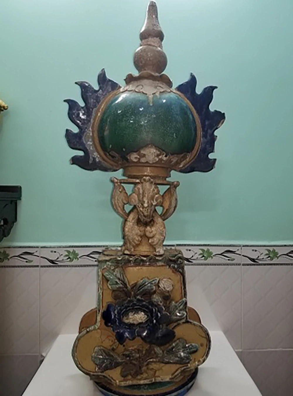 Khám xét nơi ở của Sĩ, Công an quận Bình Thạnh thu giữ một bộ Hỏa Châu, một bình Hồ Lô, một bông hoa bằng gốm sứ.