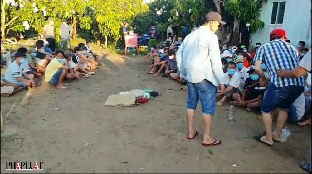 Công an bắt quả tang hơn 100 người đang sát phạt bằng hình thức đá gà. Ảnh: Kiều Mộc