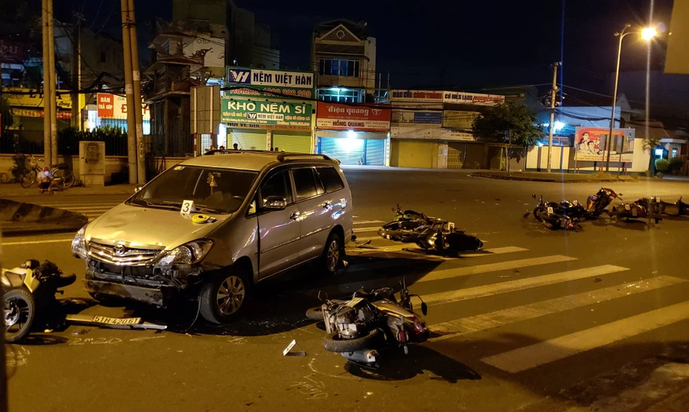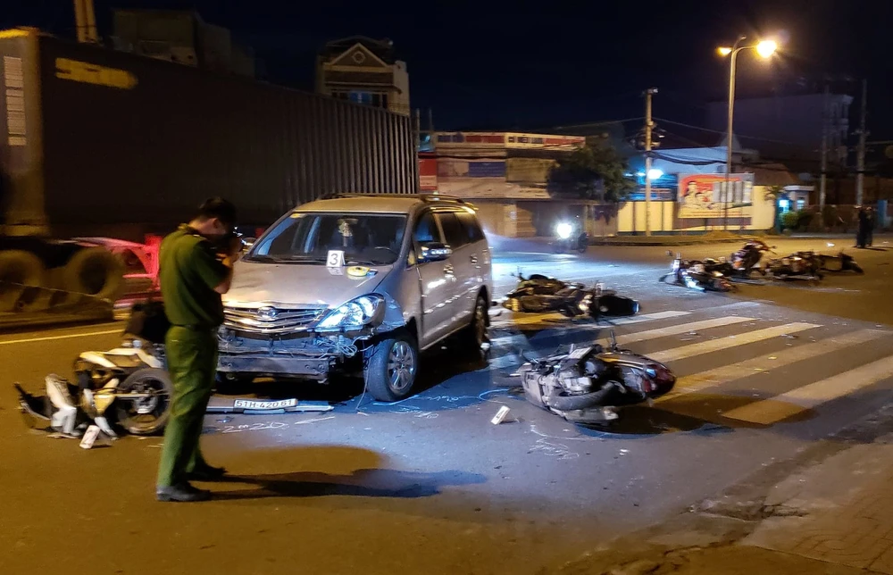 Trong sáng 20-11, Công an quận Thủ Đức, TP.HCM vẫn đang điều tra làm rõ nguyên nhân vụ tai nạn ô tô 7 chỗ tông 10 xe máy làm ít nhất năm người bị thương tại ngã ba chùa Cao Đài vào đêm 19-11.