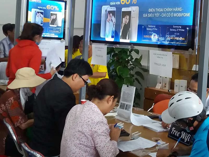 Khách hàng đăng ký thông tin cá nhân tại một điểm của nhà mạng MobiFone tại quận 5, TP.HCM. Ảnh: HTD